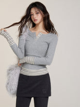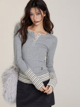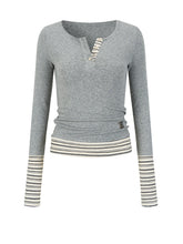 Product Name: Stripe Patchwork Base Layer Long-Sleeve T-Shirt