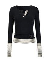 Stripe Patchwork Base Layer Long-Sleeve T-Shirt