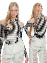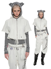 Striped Cat Ear Hooded Top