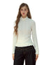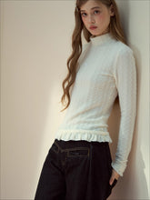 Made with jacquard-textured knit fabric, this half-turtleneck top combines softness and warmth with a refined structure. The subtle raised collar gently frames the neck, while the tailored fit allows for comfortable layering under coats or cardigans. Feminine pleats at the cuffs and hemline create understated dimension, making this a versatile base for both casual and sophisticated styling. Designed to be breathable, lightweight, and timelessly chic.