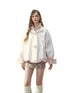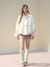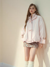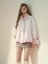 Cotton-touch puffer with plaid trims and lofty fill for cozy volume. Smooth zip + snap placket, bow accent, and elastic bubble hem shape a sweet, rounded silhouette. Handy pockets polish winter looks.