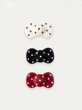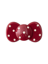 Cute retro polka-dot hair clip with a bow accent. Made of thick double-layer acrylic with a glossy finish. Hand-slotted body and hand-painted dots for lively texture. One size fits most hairstyles.