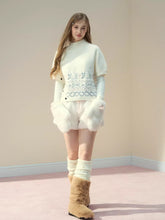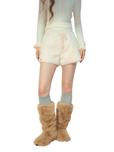 Warm faux-shearling shorts with a suede finish and slim, structured lines. Comfy pull-on waist and neat pockets keep it practical; the rounded hem flatters the legs for sweet, winter-ready styling.