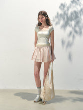 This two - piece designed smocked camisole with chest splicing and regular shoulder short sleeves perfectly combines fashion and comfort. The unique smocking process is delicately shown on the camisole, not only adding a sense of hierarchy but also showing a unique charm. The hem adopts a double - layer lace design, with delicate folds layer upon layer, just like blooming flowers, adding a touch of romantic charm to the overall shape. The splicing of checkered and solid - color knitted fabrics is a ingenious design. It not only retains the classic checkered elements but also makes the whole clothes more simple and fashionable through the addition of solid colors. At the chest position, the exclusive brand - customized logo label is prominently displayed. This detail design not only highlights the unique identity of the brand but also improves the quality of the whole clothing invisibly. Two - color options: beige with pink check is sweet and romantic, and navy with dark blue check is calm and restrained.