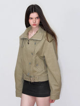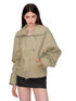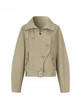 Crafted from a structured cotton shell with a smooth polyester lining, this jacket balances durability and comfort for transitional seasons. The irregular button placement and utility-inspired pocket design add a distinctive vintage edge, while the adjustable waist belt enhances shape and styling flexibility. Designed in a relaxed silhouette with clean panel construction, it creates a strong yet wearable statement. Ideal for spring layering with skirts or denim for an atmospheric, modern look.