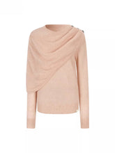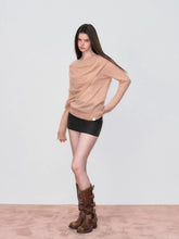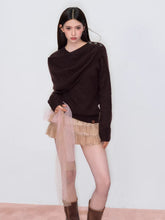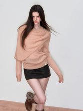Crafted from a soft wool-blend knit with cotton and mohair, this sweater offers warmth with a lightweight, airy feel. The asymmetrical shawl neckline drapes naturally across the body, creating layered visual interest and a relaxed silhouette. Designed in a loose fit with fine knit texture, it transitions easily from casual layering to elevated everyday styling. Pair it with skirts or trousers for an effortless spring look.