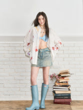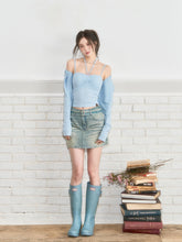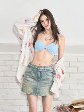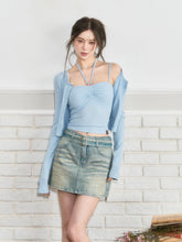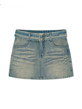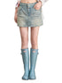 Integrating rhinestone elements into the waistband, this denim skirt sparkles and shines, offering a fashionable and eye-catching look.