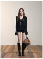 Product Name: Black & Off-white Heavy Zip Knit Jacket