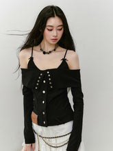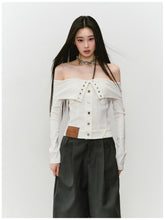 Integrate the one - shoulder design into the top item. Match with the folded collar to highlight the beauty of the neck line.