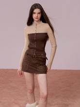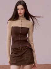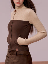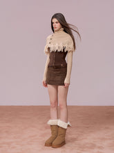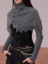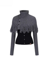 Color-Block High Neck Knit Top & Fringe Cape Set