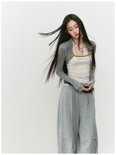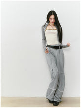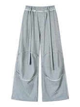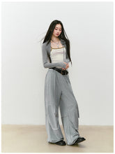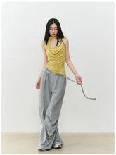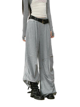 These color - blocked raw - edge straight - leg wide - leg pants feature an elastic waist with overlapping straps for enhanced inclusiveness. Pairing with a cropped top highlights the beautiful body lines. The unique design combines fashion and comfort, making them a great choice for various outfits.