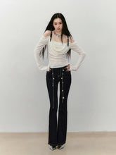 Product Name: Draped Neck Leather Strap Acetate One-shoulder T-shirt