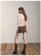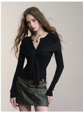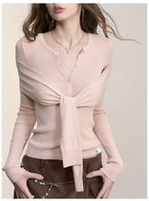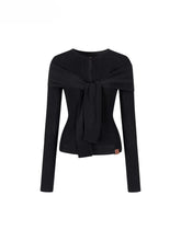 Breaking styling monotony with a dual-wear design, this knit blouse features a built-in scarf/shawl shape for added layering freedom. The open neckline visually lifts the shoulders and adds volume, while the ribbed texture and vertical lines enhance structure and elevate comfort. A perfect go-to for effortless casual styling in cooler seasons.