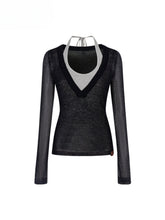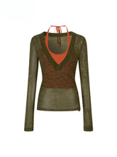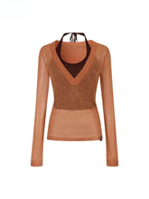 Fake Two-Piece Halter V-Neck Knit Sweater