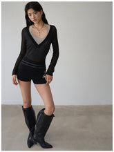 The adjustable halter can be freely controlled according to body line needs. The see-through texture breaks the dull atmosphere of autumn and winter.
