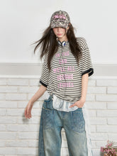 Loose short sleeves for comfort, perfect for daily wear, with horizontal stripes in contrasting colors to create an attractive focal point.