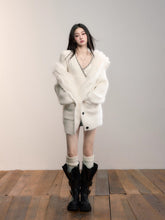 An elegant oversized knit cardigan that blends soft texture with luxurious warmth. Crafted from a rich recycled fiber and wool-blend yarn, this piece features a tactile surface with subtle luster and a plush fox-fur collar for an elevated seasonal touch. The long-pile knit construction enhances insulation while maintaining breathability and shape retention. Its relaxed silhouette and drop-shoulder design exude laid-back sophistication, perfect for layering across autumn and winter looks.