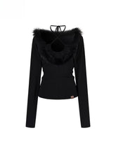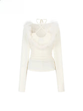 Plush knit is blended for a smooth, skin-friendly hand with light warmth and a softly structured drape. A faux-two-piece neckline frames the collarbone with a deep V edged in genuine fox-fur trim, plus an adjustable halter strap for sculpted dimension. The slim silhouette tucks easily into high-waist trousers or skirts for dinners, nights out, or layered weekday looks. Medium stretch keeps it comfortable and close to the body while the neat hem and clean back length streamline the shape.