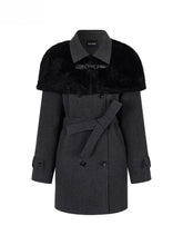 This luxurious double-breasted wool coat is designed with a stylish fur collar cape that adds sophistication and warmth to your winter wardrobe. The belt cinches the waist, offering a flattering fit, while the cozy fur collar provides extra comfort and style. The structured wool blend fabric offers durability and warmth, making it perfect for chilly weather. A timeless piece, this coat effortlessly combines elegance and practicality with its refined details and high-quality materials.