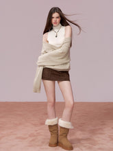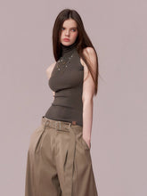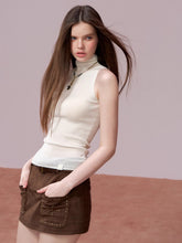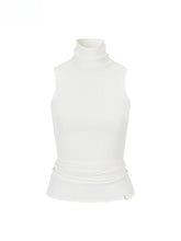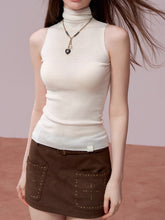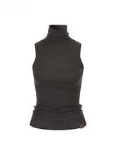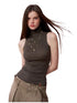 This high-neck sleeveless knit tank top is a perfect blend of sophistication and comfort. Made with a luxurious wool and silk blend, it offers a soft and warm feel for the colder months. The fitted design flatters the figure, while the ribbed texture enhances the overall style. Ideal for layering, this versatile top can be paired with jeans or skirts, making it an essential piece in your autumn and winter wardrobe.