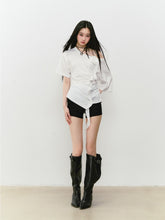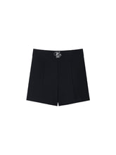 Integrate a simple silhouette into neat shorts. Contrast - color embroidery embellishment attracts visual highlights