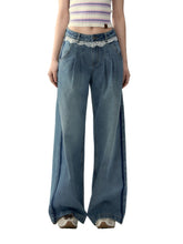 Product Name: Lace-Panel Loose Straight Denim Jeans