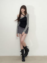 A sophisticated long-sleeve t-shirt with a lace patchwork design and colorblock detailing. This unique style combines classic elements with a modern twist, perfect for those who enjoy a blend of elegance and comfort in their wardrobe.