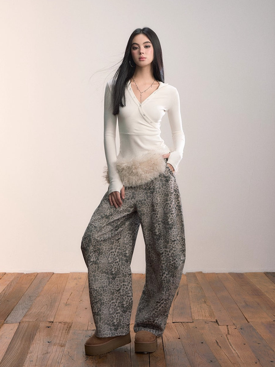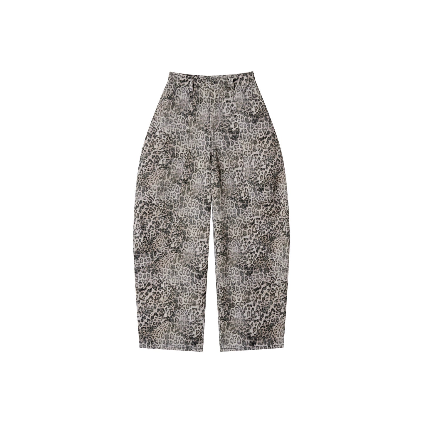 A fashion-forward loose-fit denim style infused with a retro leopard pattern for bold autumn and winter looks. Crafted from 100% cotton with a soft brushed texture, the fabric provides comfort, breathability, and subtle structure. The jacquard pattern adds visual dimension and personality, while the sculpted seams and straight-leg silhouette enhance layering proportions. Finished with a tonal waistband patch detail for a relaxed yet refined street aesthetic.