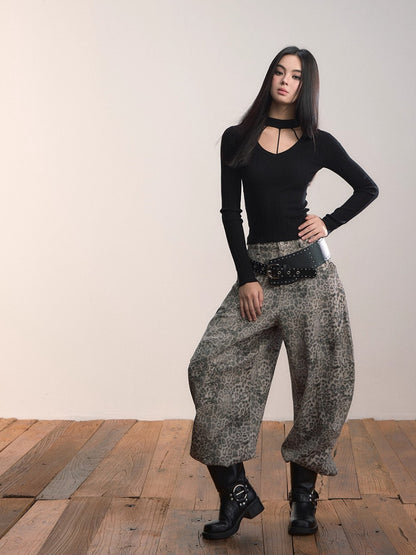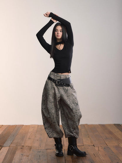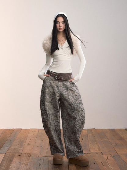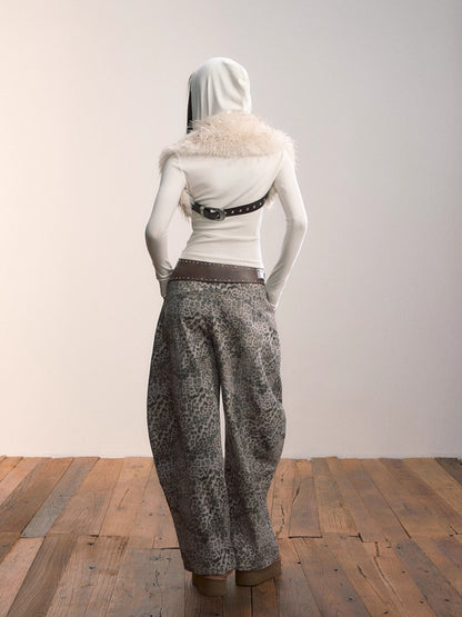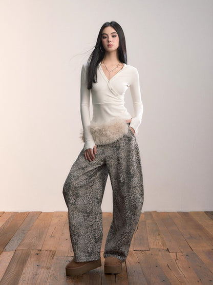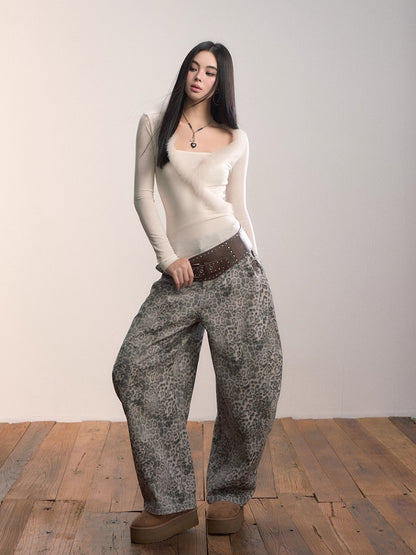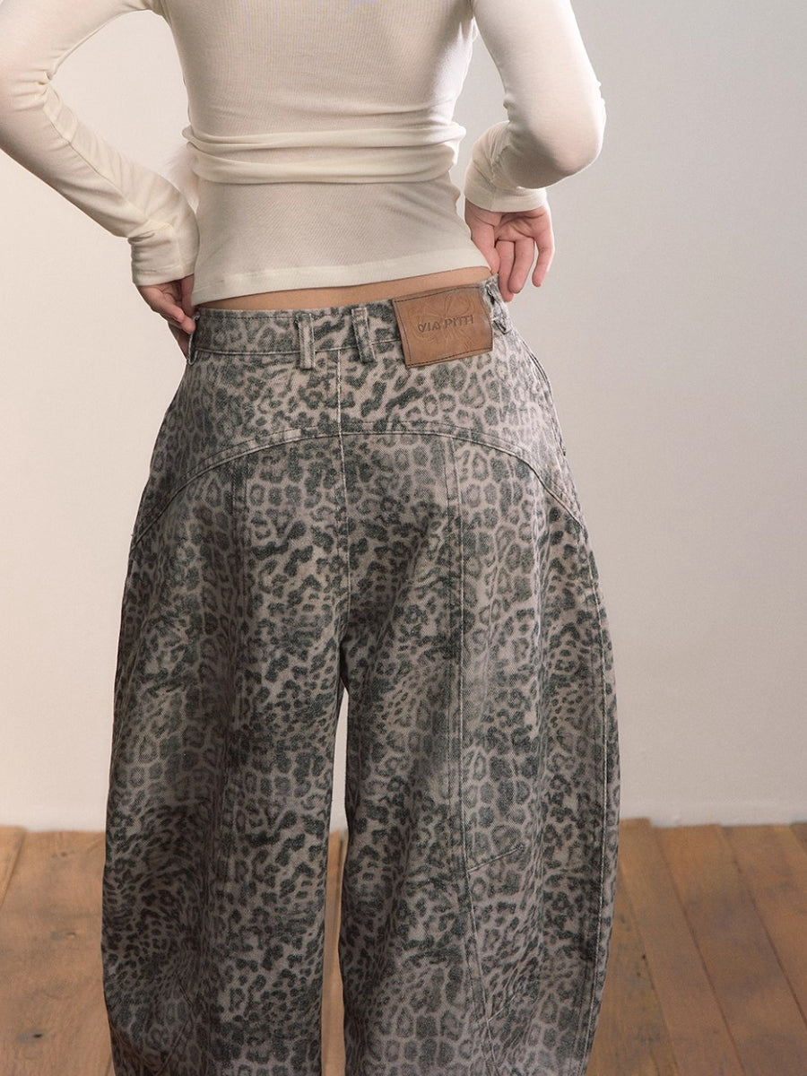 Leopard Print Scythe Wide-Leg Casual Jeans
