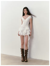 Mesh Jacquard Halter Lace Short-sleeve T-shirt