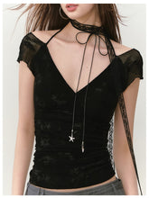 Product Name: Mesh Jacquard Halter Lace Short-sleeve T-shirt