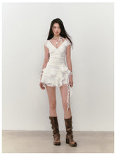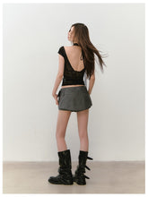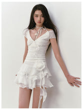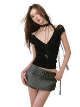 The halter short T - shirt allows for unrestrained stretching and a comfortable fit. The tie - up and V - neck design enhance the aesthetic of the neckline.