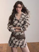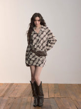A stylish plaid shirt dress featuring an irregular hem design with a relaxed silhouette. Button-down closure for easy wear and a playful belted waist to highlight curves and add layered dimension. Perfect for autumn everyday wear with a chic, edgy vibe.