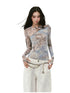 Product Name: Printed Mesh Contrast-colored Long-sleeve T-shirt
