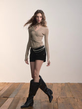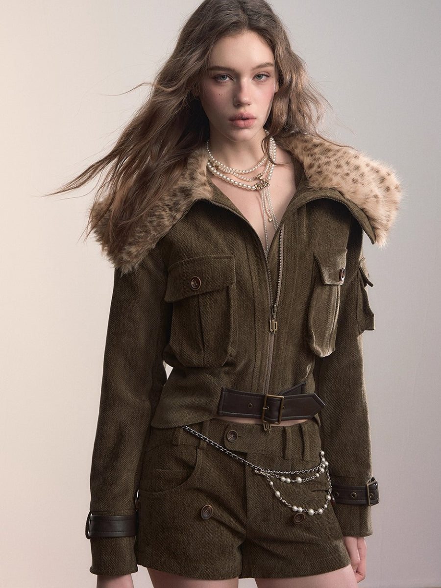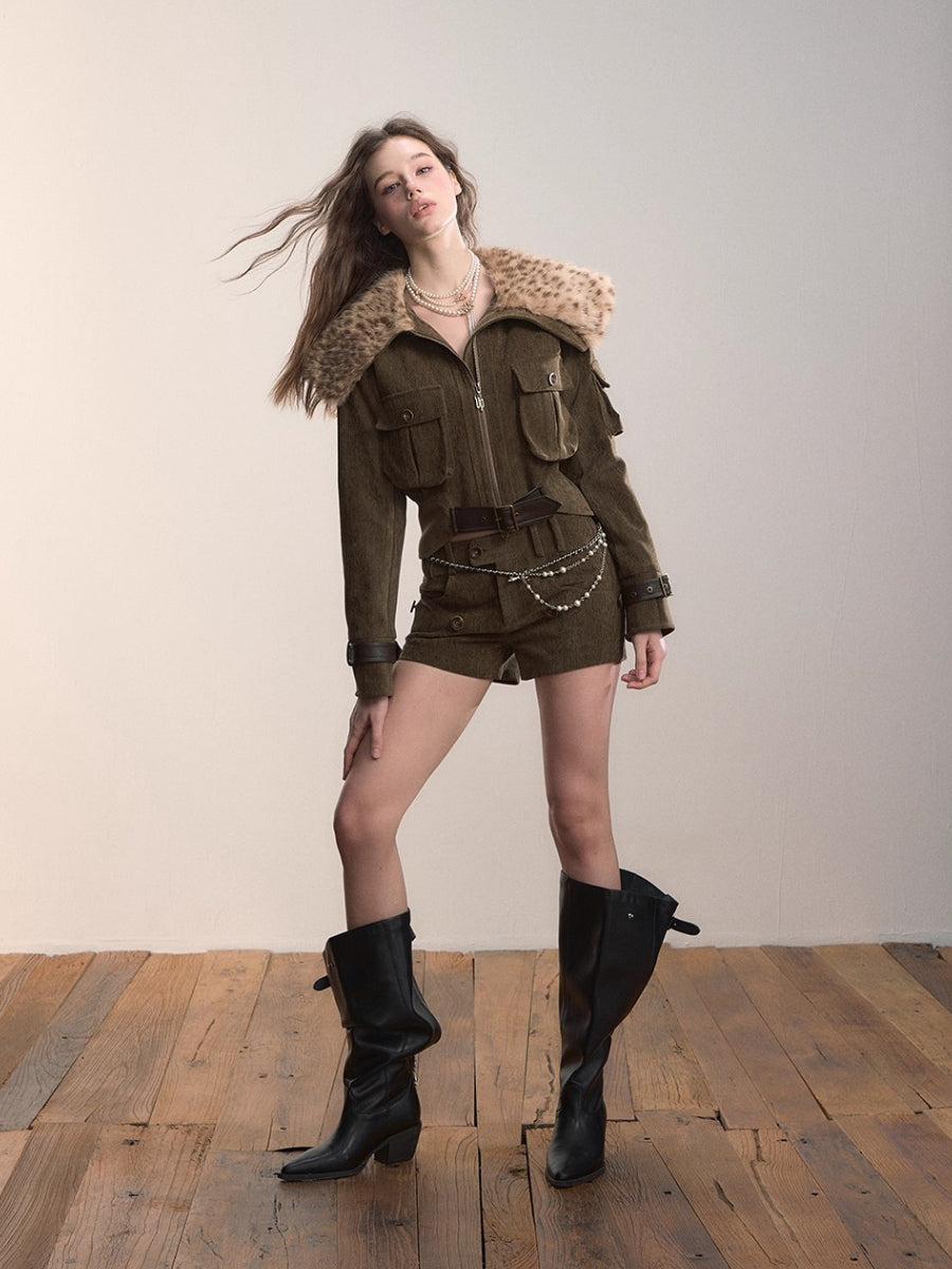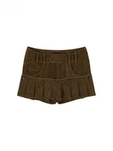 A versatile vintage-inspired mini skirt designed for autumn and winter styling. Crafted from soft yet structured corduroy, this skirt combines warmth, comfort, and a subtle retro attitude. The detachable hem creates a flexible two-way look — wear it as a classic short skirt or with added layering depth. Diagonal seams and side flap pockets add definition and practicality, balancing structure with femininity. Perfect for pairing with knits or fitted tops for a refined streetwear touch.