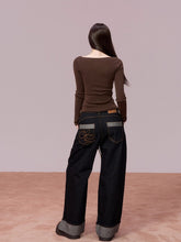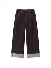 These jeans feature a modern design with a vintage touch. The wide-leg, straight cut is elevated by rhinestone detailing on the cuffs for a unique and chic look. Made from 100% cotton, these jeans are soft yet durable, perfect for layering during colder months. With a minimalistic and stylish appearance, they are versatile enough to pair with various outfits, whether for casual or semi-casual occasions.