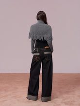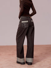 Rhinestone Cuffed Wide-Leg Denim Jeans