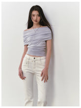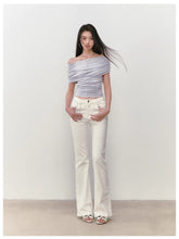The pure - desire T - shirt features an off - the - shoulder design, and rhinestone elements adorn it to enrich the texture of details.