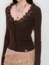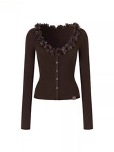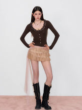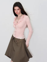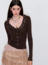 Ruffle V-Neck Knit Cardigan