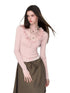 Crafted from a soft knit blend featuring silk and wool, this cardigan offers a smooth handfeel with gentle elasticity. The V-neckline is accented by delicate ruffle detailing, adding dimension and refined femininity to a classic silhouette. Designed in a fitted shape with fine ribbed texture, it enhances natural curves while remaining comfortable. Easy to style alone or layered for an elegant spring look.