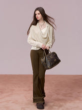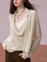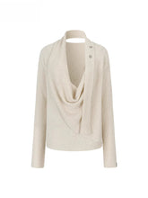 This luxurious cowl neck sweater combines a unique shiny design with soft, wool-blend fabric to offer both style and warmth. The loose, relaxed fit ensures comfort, while the fluttering ties at the neckline add an elegant touch. Perfect for layering in cooler weather, this piece makes a fashionable statement with its cozy texture and distinctive design. Ideal for both casual and semi-formal settings this fall and winter.