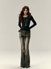 These stretch flared jeans bring a modern twist to classic denim with a flattering fit-and-flare silhouette. The multi-hole waist design adds a bold visual element, perfect for versatile styling. The unique distressed details and stretchy material ensure comfort while maintaining a retro yet chic aesthetic. Pair these jeans with casual or formal tops for a stylish look.