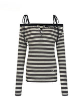 Product Name: Tie-Button Off-Shoulder Long-Sleeve T-shirt