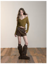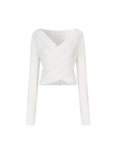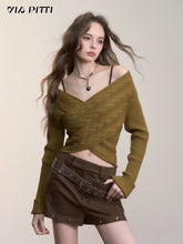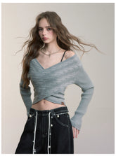 Reinterpreting classic cable knits with a cropped, asymmetrical crossover design, this pullover radiates confidence and energy. The textured surface and sleek silhouette make it ideal for both solo wear and layered styling.
