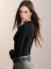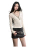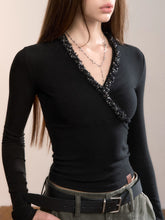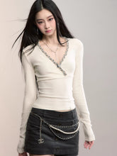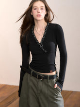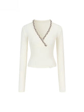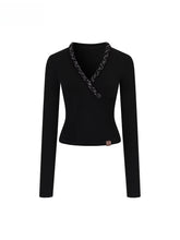 V-Neck Beaded Trim Knit Top