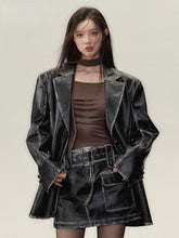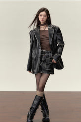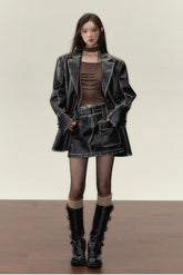 Vintage PU Leather Jacket & Skirt Two-Piece Set