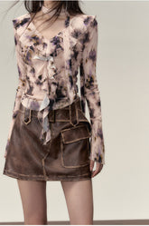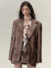 This two-piece set features a vintage-inspired PU leather jacket and skirt with a worn-effect finish. The jacket's fabric is soft yet structured, providing a comfortable fit with high resilience. The skirt is designed with a classic silhouette, offering a touch of elegance. Both pieces are crafted using eco-friendly materials, ensuring they are free from animal products.