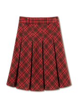 Vintage Red Plaid Wool Christmas Pleated Skirt