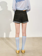 These are washed rolled denim shorts. Featuring a classic denim fabric with a washed finish and rolled edges, they offer a casual and stylish look, perfect for summer or daily casual wear.