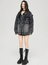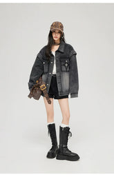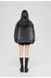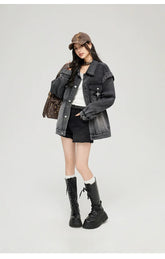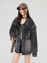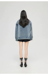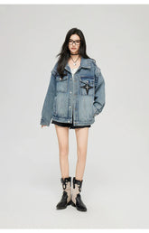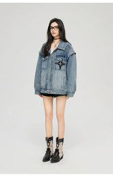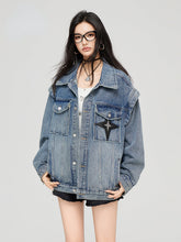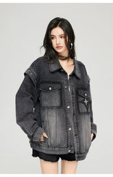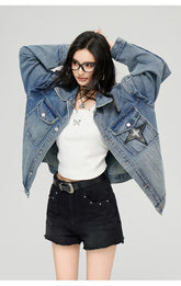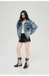Pocket stitching with faux leather star design, refined and eye-catching. 3D cut lines enhance structure and shape. Washed vintage denim color for a stylish and casual look.